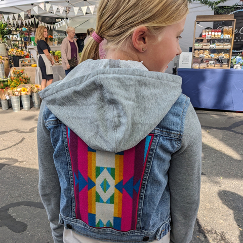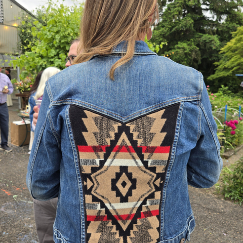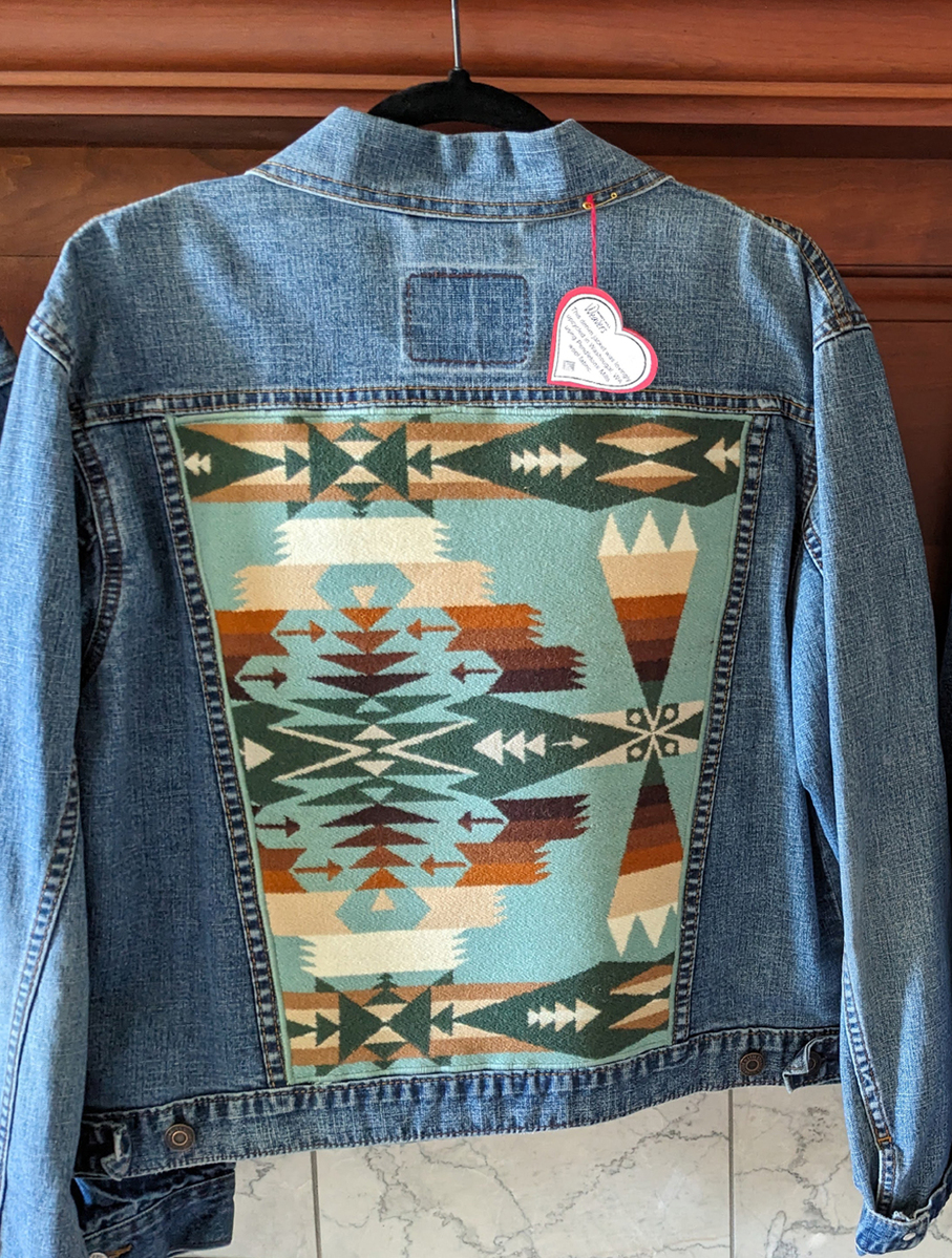 I take denim jackets to the next level using Pendleton© wool fabric which I expertly applique to the back panel. Choose a finished jacket or customize your own with your choice of colors and patterns.