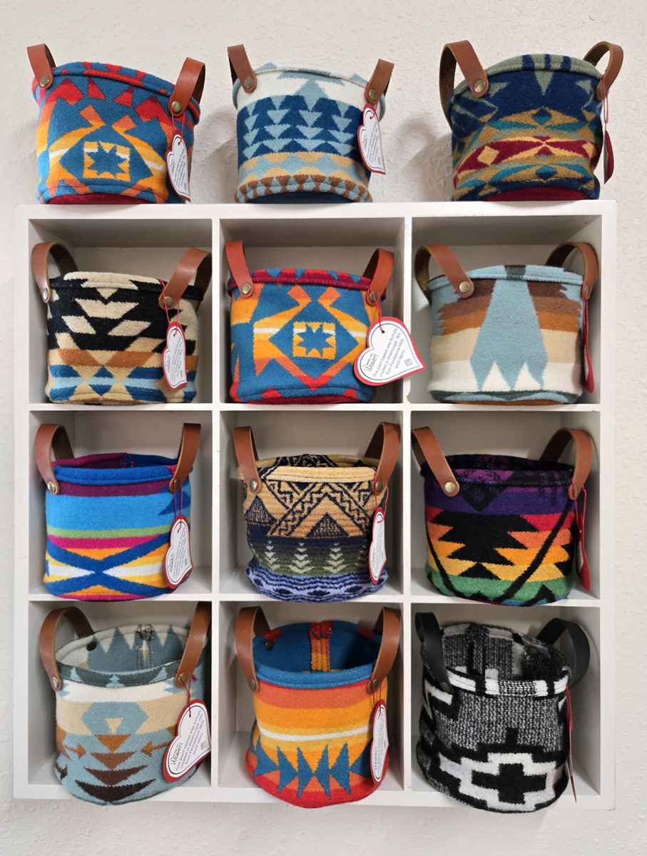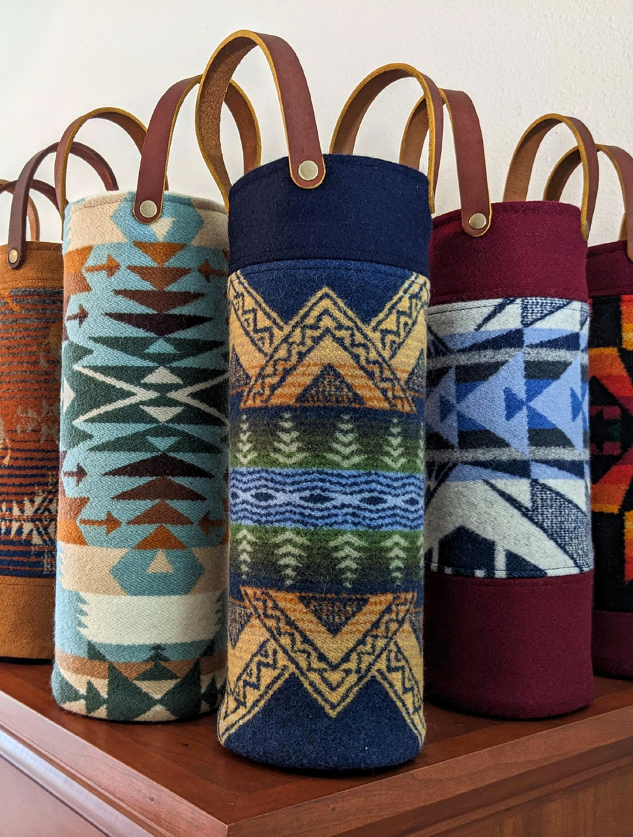 Brighten your home with beautiful hand crafted pillows created from Pendleton© wool fabric remnants. I also design wine and flower totes, plant baskets, coasters, and ornaments, all made from quality Pendleton© wool fabric.